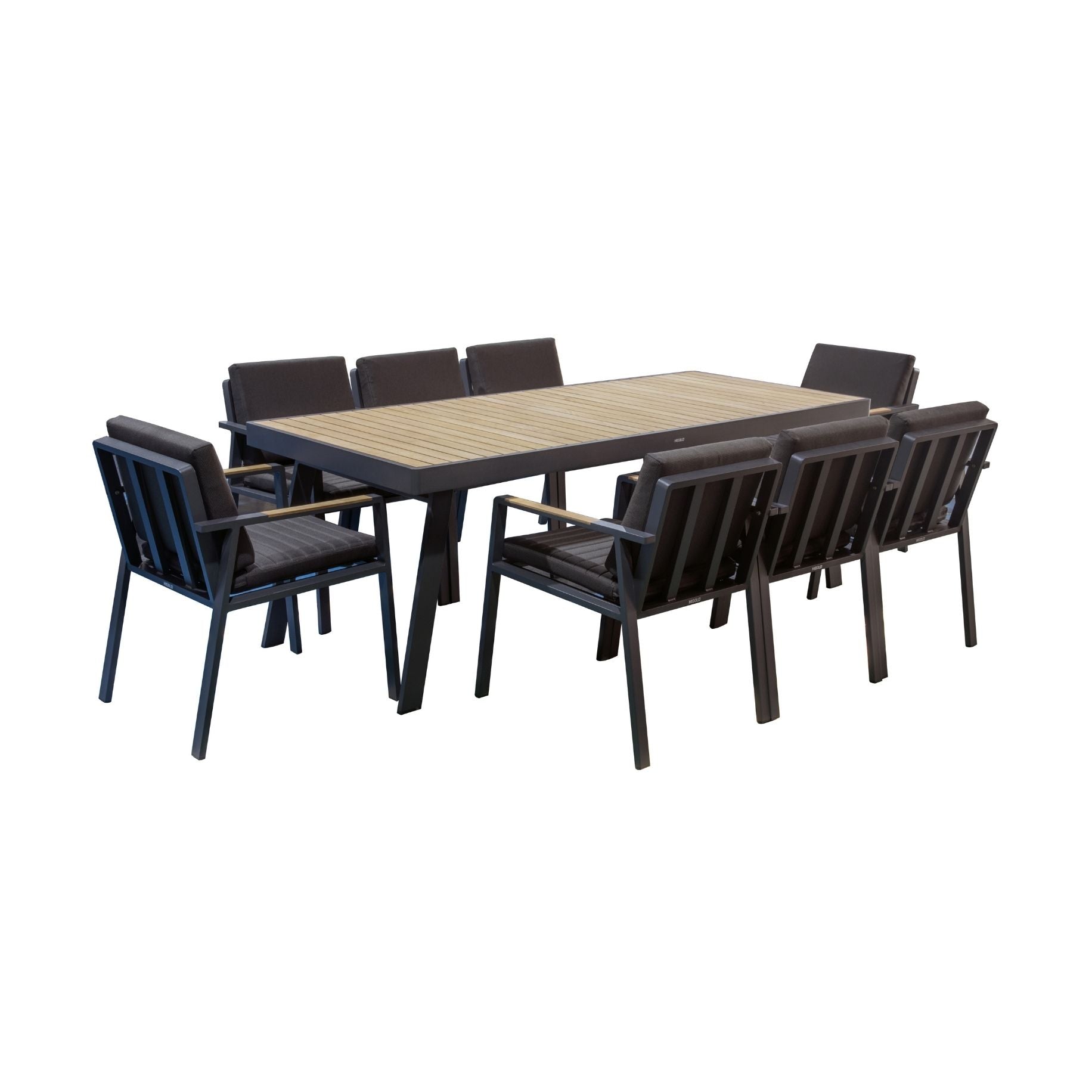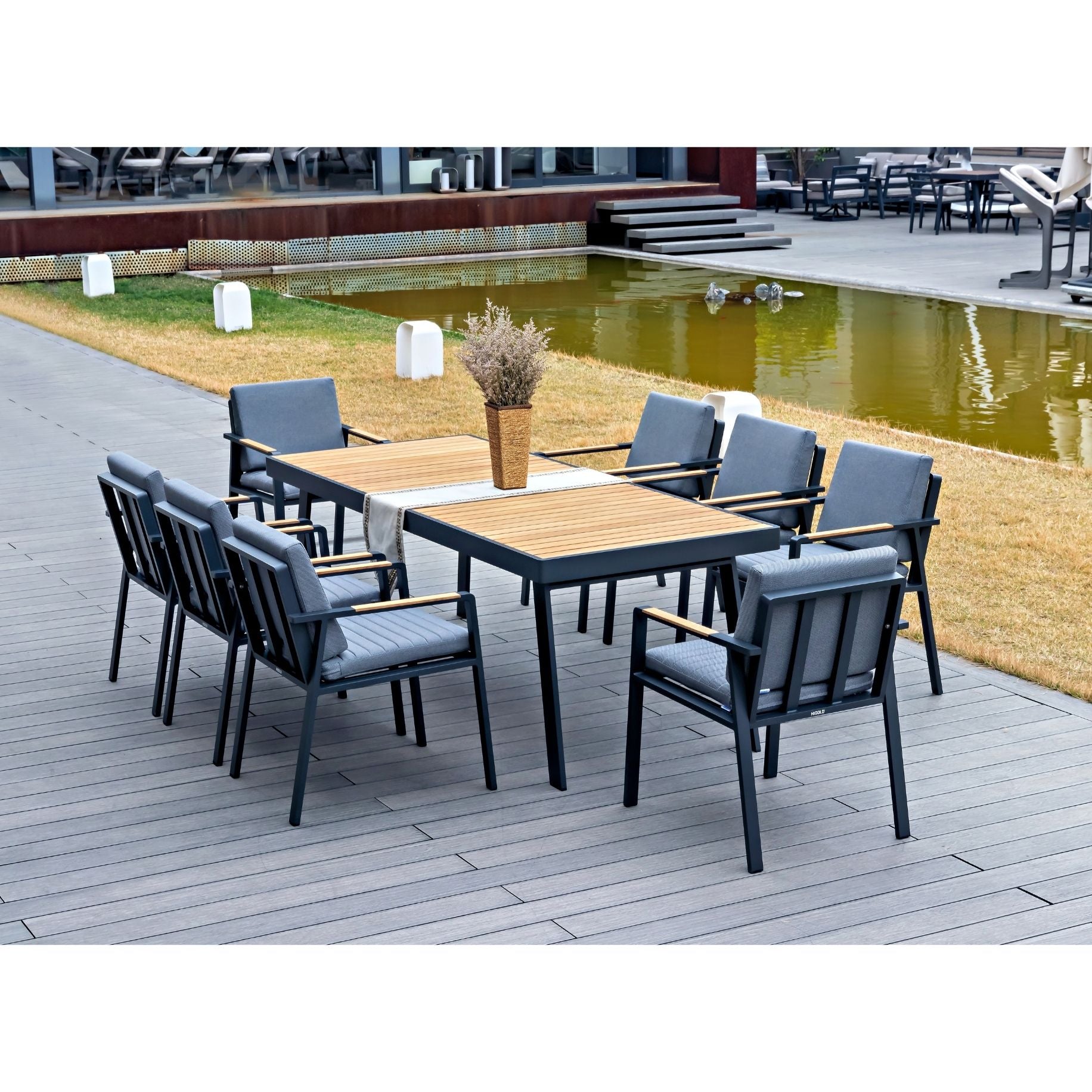 Die Nofi-Kollektion besticht durch ihr modernes, minimalistisches Design und eine harmonische Kombination aus Aluminium, Teakholz und gemütlichen Polstern. Die klare Formensprache und das leichte, aber dennoch robuste Gestell machen diese Gartenmöbel zu einem stilvollen Highlight für Terrasse, Balkon oder Garten.