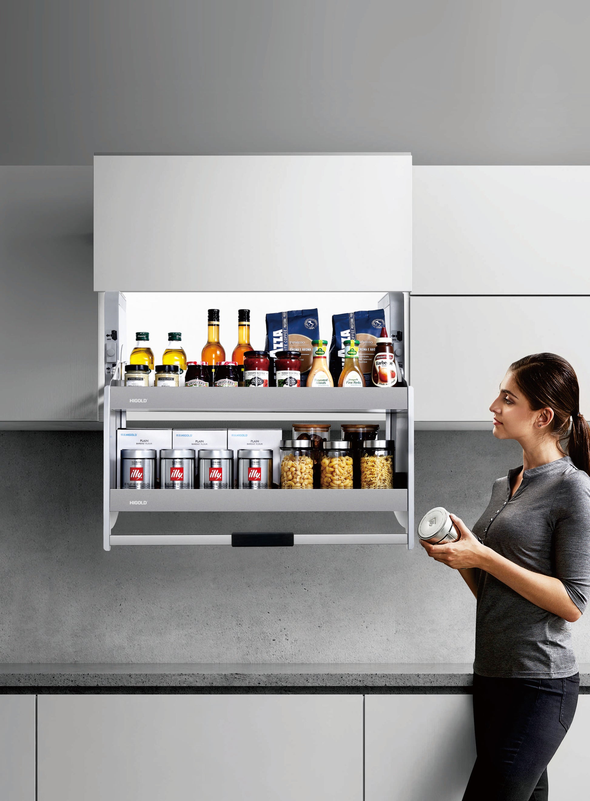 Der FlexLift macht hohe Schränke für jeden zugänglich – eine smarte, ergonomische und stilvolle Lösung für deine Küche!